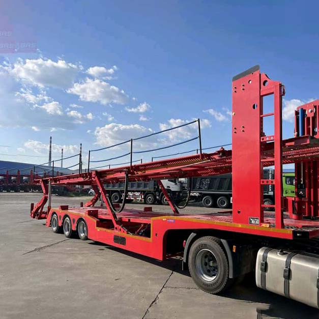 Treler Semi Muatan Bekas Pengangkut Kereta 3 Gandar 8 direka untuk pengangkutan kereta, diperbuat daripada keluli aloi berkekuatan tinggi, dengan kapasiti galas beban yang kuat dan tahan lama. Reka bentuk struktur dua lapisannya berkesan meningkatkan kecekapan pengangkutan, dan ia juga dilengkapi dengan peranti penetapan termaju untuk memastikan keselamatan dan kestabilan kereta dalam proses pengangkutan. Di samping itu, kenderaan itu juga menyepadukan sistem pemantauan pintar untuk merealisasikan pemantauan masa nyata dan pengurusan proses pengangkutan yang cekap, yang digunakan secara meluas dalam bidang logistik automotif. Kedua-dua belah badan dilengkapi dengan tanjakan yang mudah dan peranti pengunci keselamatan , yang mudah untuk memuatkan dan membetulkan kereta dengan cepat, memastikan keselamatan semasa pengangkutan.