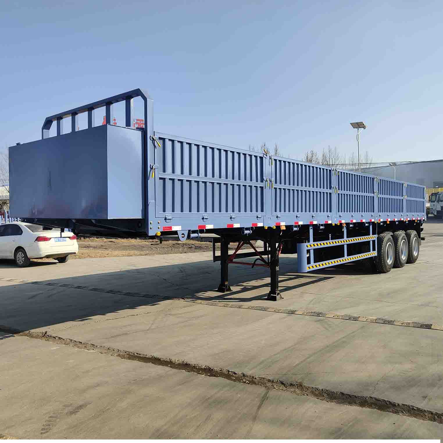 Pagar direka untuk dilipat atau cepat dibongkar, supaya ruang pemuatan boleh diselaraskan secara fleksibel mengikut saiz barang, yang mudah untuk memuatkan dan memunggah cepat dan meningkatkan kecekapan pengangkutan.