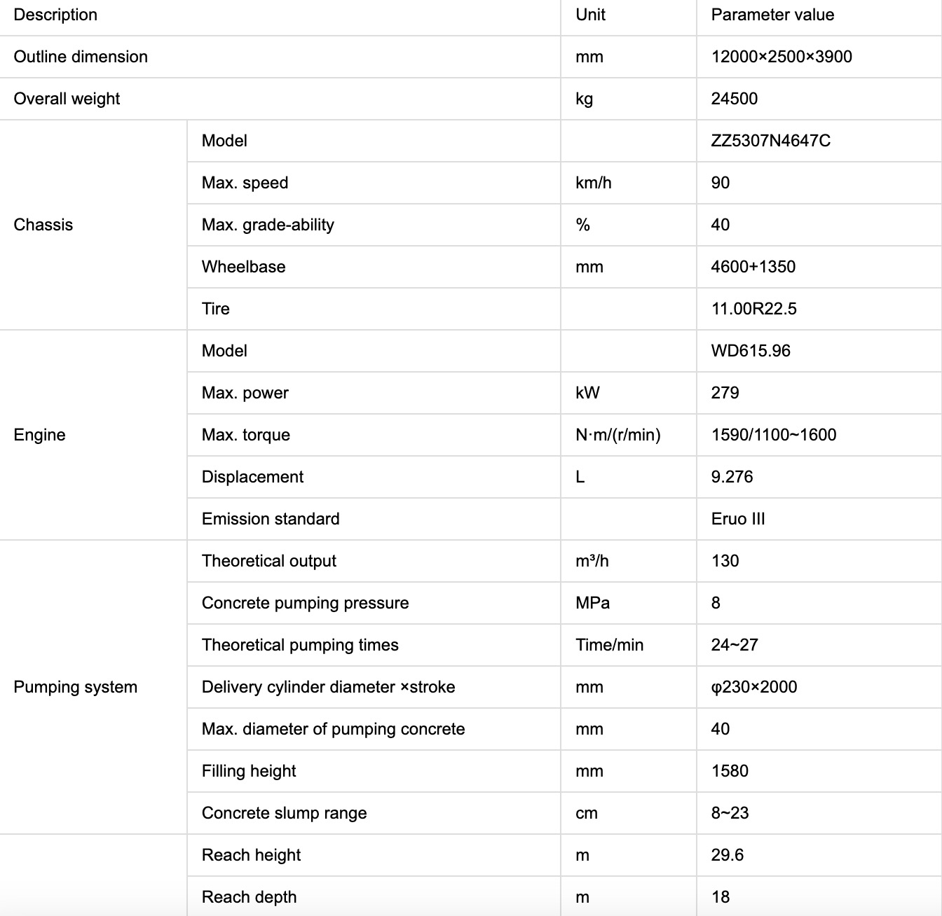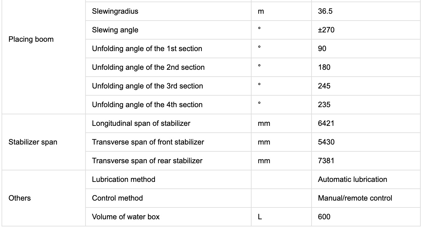 Multiple Advanced Technologies: Sany's Boom Pump Truck mengintegrasikan pelbagai teknologi canggih, seperti teknologi kedudukan ledakan satu butang, teknologi pengurangan getaran pintar, teknologi penjimatan tenaga, dan teknologi kawalan anti-sway putaran. Teknologi Pengurangan Getaran Boom Pintar, yang diintegrasikan dengan teknologi putzmeister, dengan berkesan mengurangkan getaran boom semasa mengepam, dengan amplitud dikurangkan sebanyak 50%; Teknologi penjimatan tenaga, yang diintegrasikan dengan teknologi putzmeister, mencapai 29 perubahan arah setiap minit (pada tekanan sistem 12 MPa), meningkatkan kecekapan mengepam sebanyak 25% dan mengurangkan penggunaan bahan api sebanyak 10%; Teknologi kawalan anti-swing berputar menggunakan teknologi brek putaran, mengurangkan amplitud swing putaran boom sebanyak 60%.
